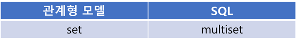 set은 중복된 element(row)를 포함할 수 없지만, multiset은 중복된 element(row)를 포함할 수 있다.