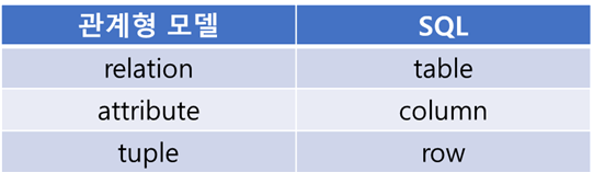 - 관계형 모델(relational model)과 SQL 언어의 비교