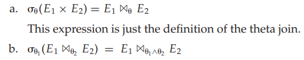 4. 선택 연산은 카티션 곱이나 세타 조인과 결합한다.