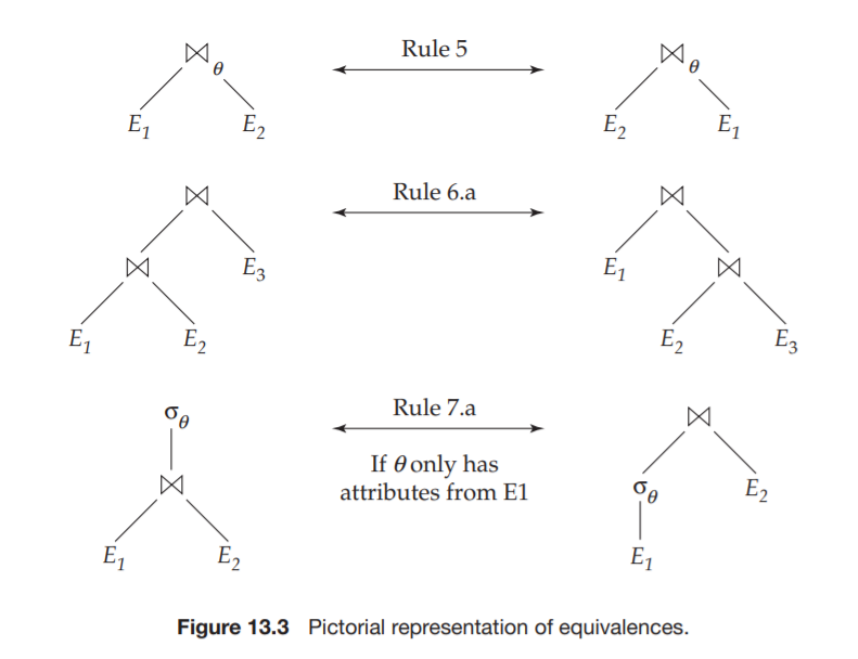 모든 적법한 데이터베이스 인스턴스에 대해 두 표현식이 동일한 결과 튜플을 만들어 낼 때, 두 개의 관계 대수 표현식은 동등(equivalent)하다고 한다.
