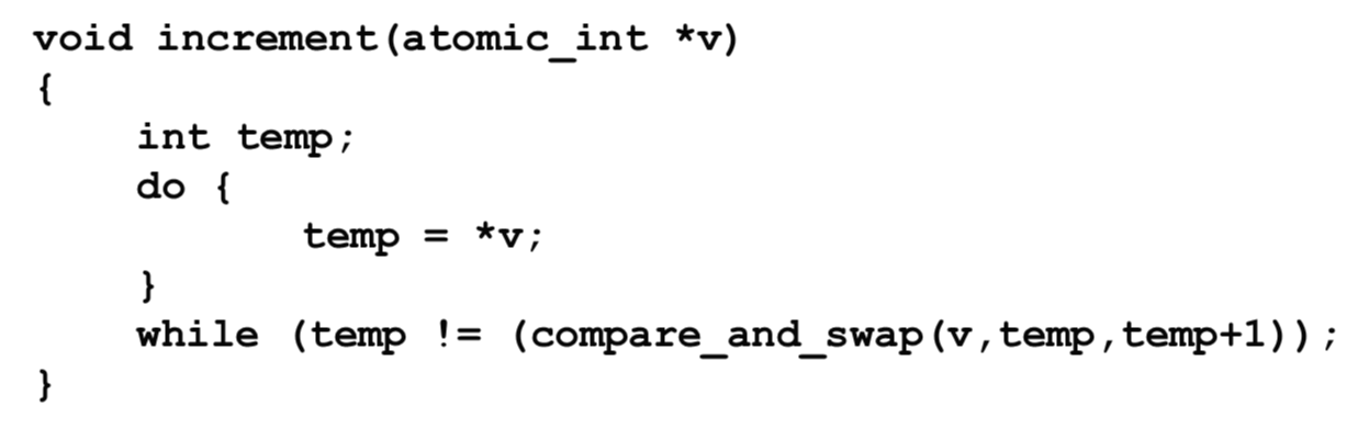 이러한 함수는 종종 compare_and_swap() 연산을 이용해서 구현되기도 한다.
