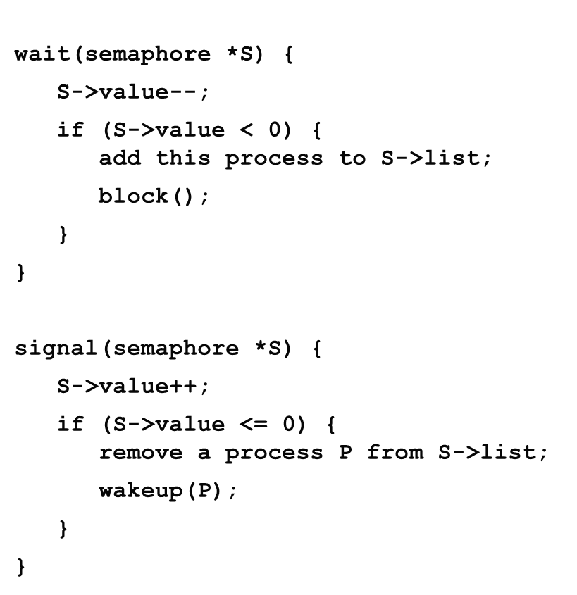 2. 세마포 S를 기다리던 일시 중지된 프로세스는 다른 프로세스가 signal() 연산을 실행하면 재시작된다.